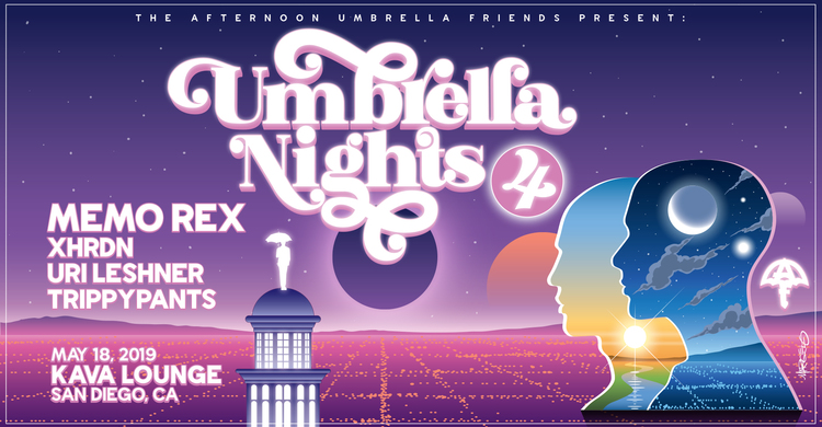 The Afternoon Umbrella Friends are happy to welcome back Memo Rex, hot off a magical appearance at Desert Hearts this last weekend. πWe're also very excited to be bringing Memo's aitherios brethren, and our good friend xhrdn and his ethereal sounds for his first performance under our umbrella. β±To round out the lineup, we have The Deep End resident DJ and video maestro Uri Leshner joining us once again, who will be fresh off his set at West Coast Weekender. And last but not least, our very own TrippyPants, the mastermind behind our beautiful decor. π