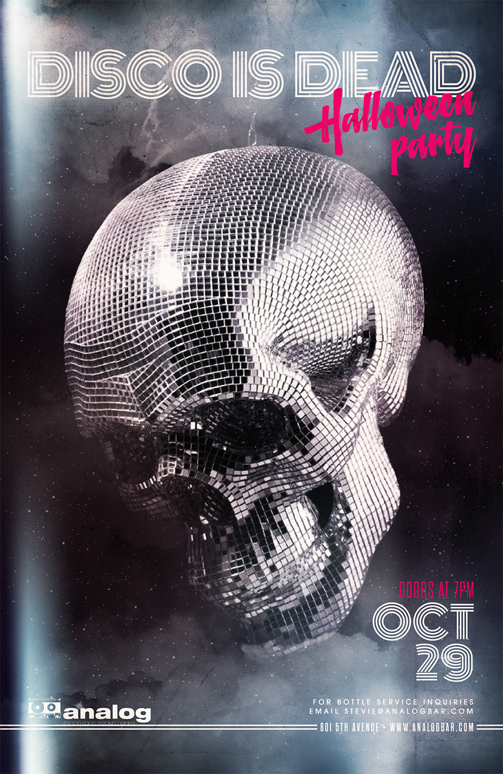 Analog Disco is Dead Halloween PartyOctober 29thDoors open at 7pmAt Analog 801 5th Ave.San Diego, CA 92101For bottle service inquiries email stevie@analogbar.com