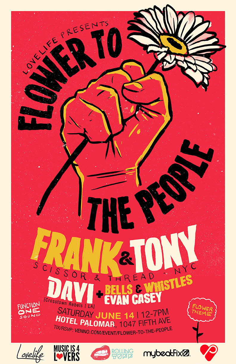 * Enter to win 4 tickets to Flower to the People by posting any Frank & Tony or DAVI related content i.e. mix, video, photo, interview, etc; or a photo of pretty flowers on the wall of the Facebook event page: