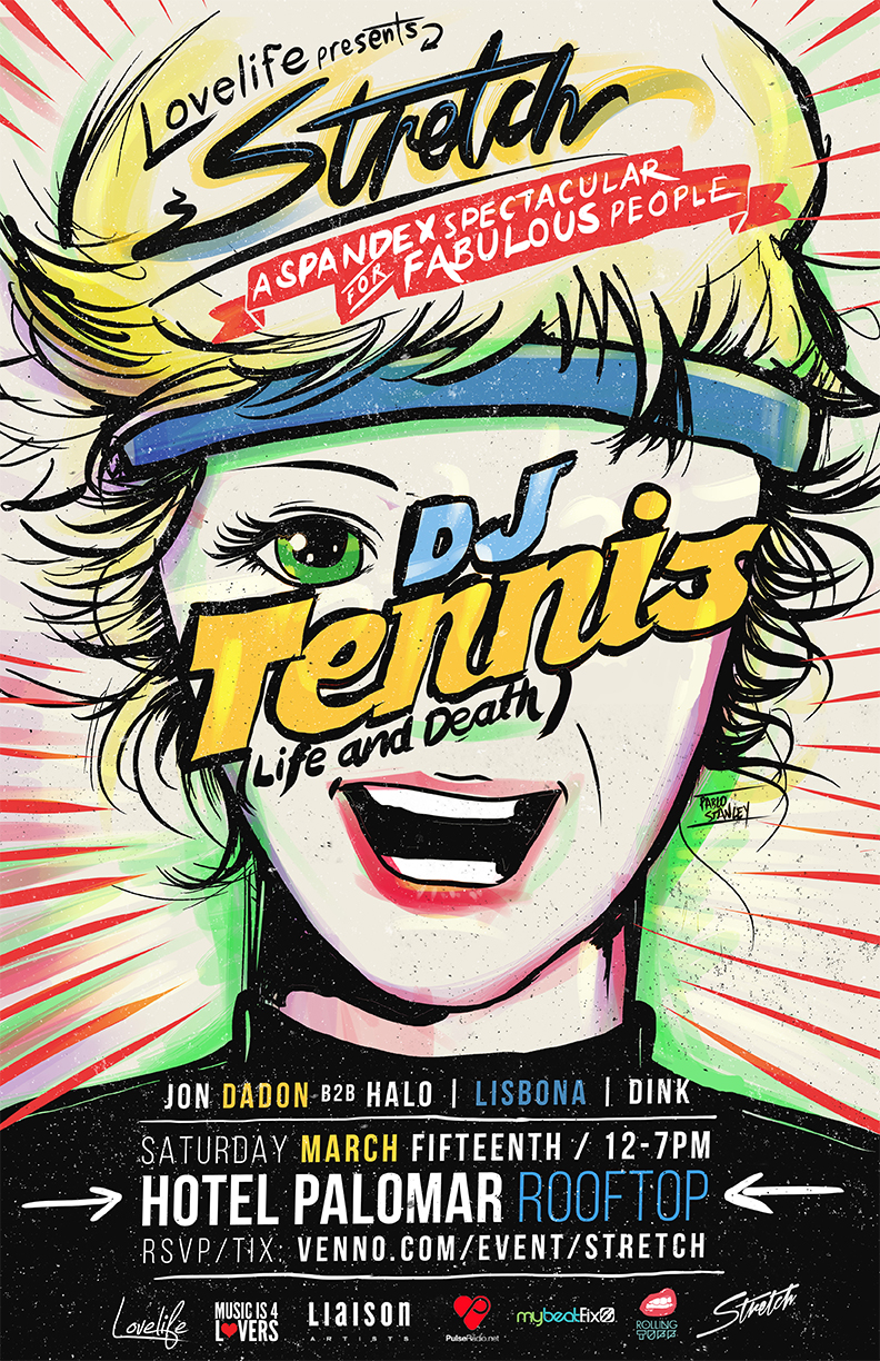 * Enter to win 4 tickets to STRETCH by posting any DJ Tennis related content i.e. mix, video, photo, interview, etc, or a photo of your sexy ass spandex on the wall of this Facebook event page: www.facebook.com/events/1392215767709148
